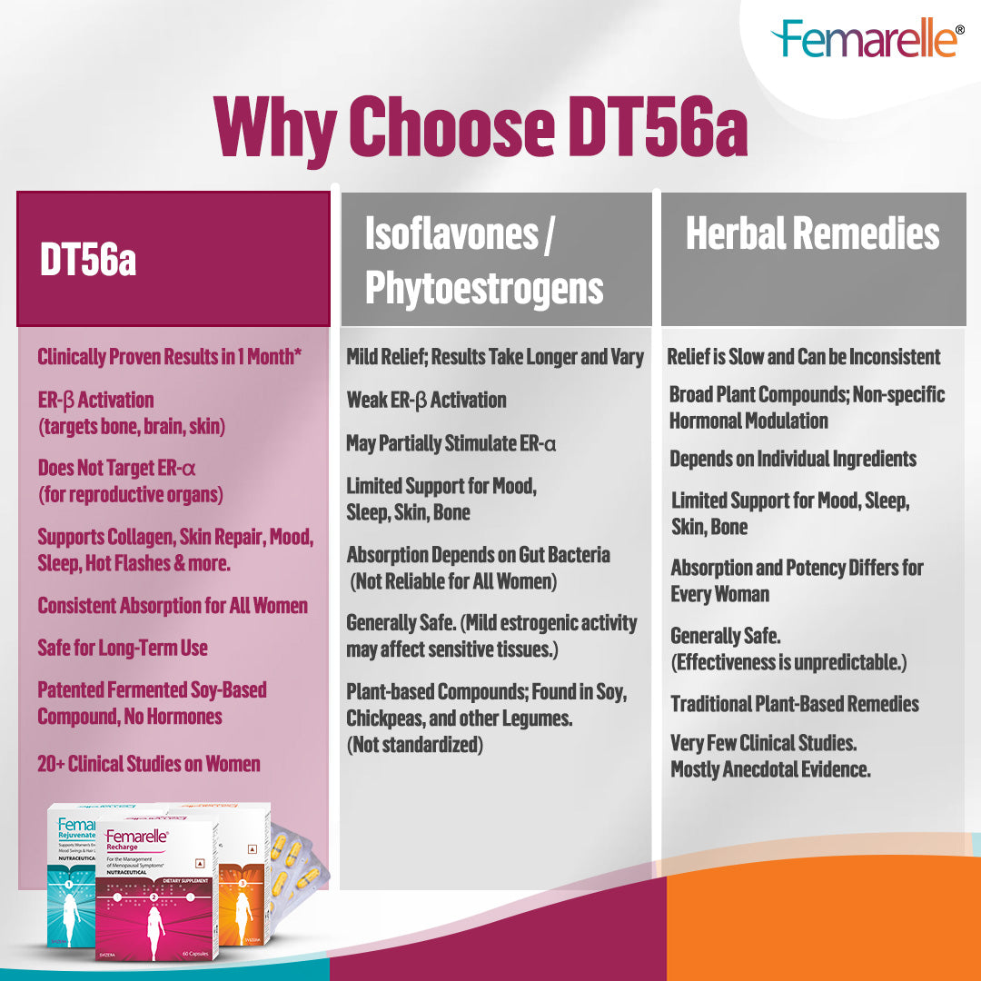 | Feature | Isoflavones | DT56a (Femarelle’s Unique Ingredient) | Phytoestrogens |