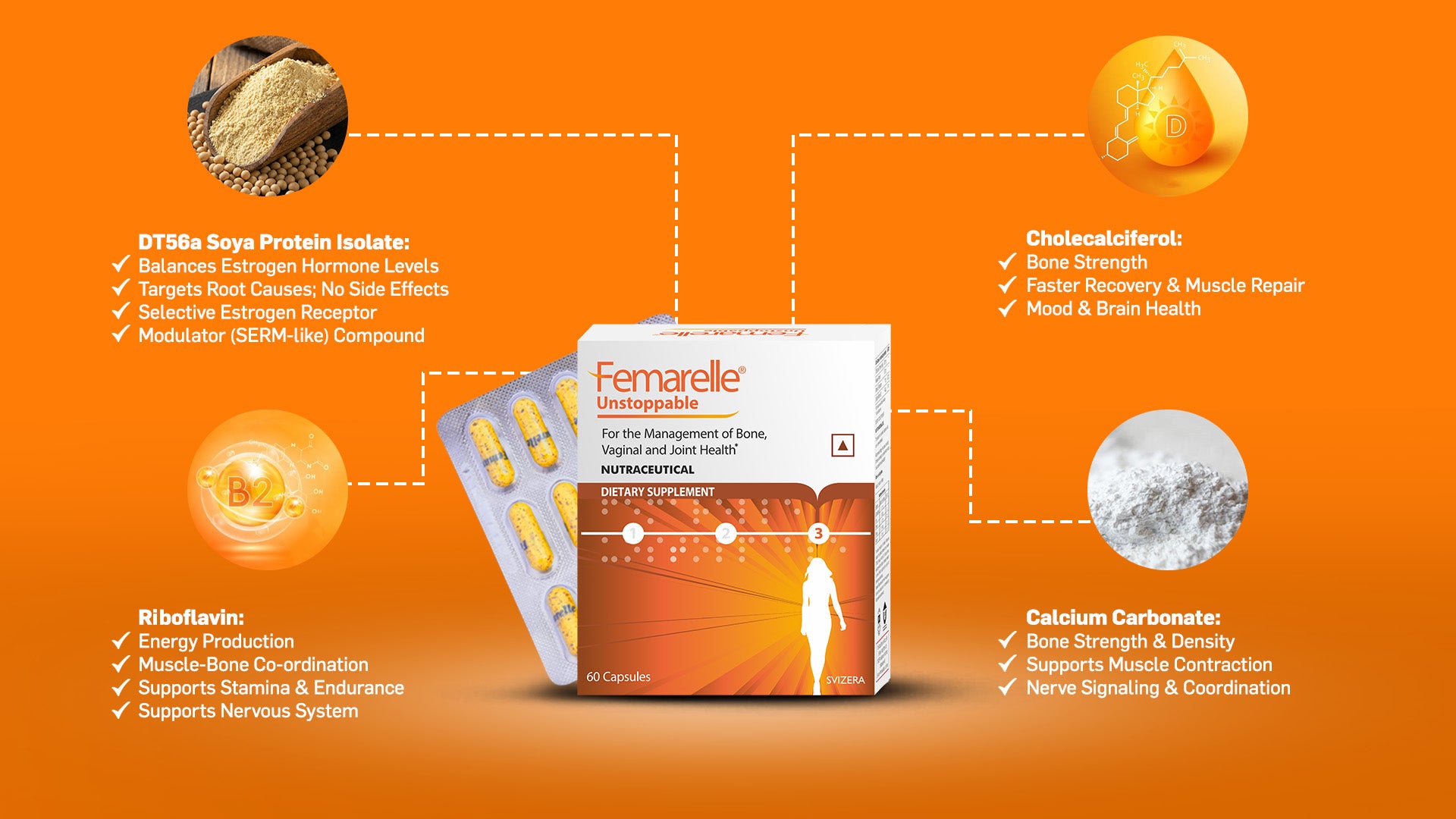 Femarelle® Unstoppable | Natural Women Supplements | Joint, Bone, Muscle & Vaginal Health Support | Global Brand