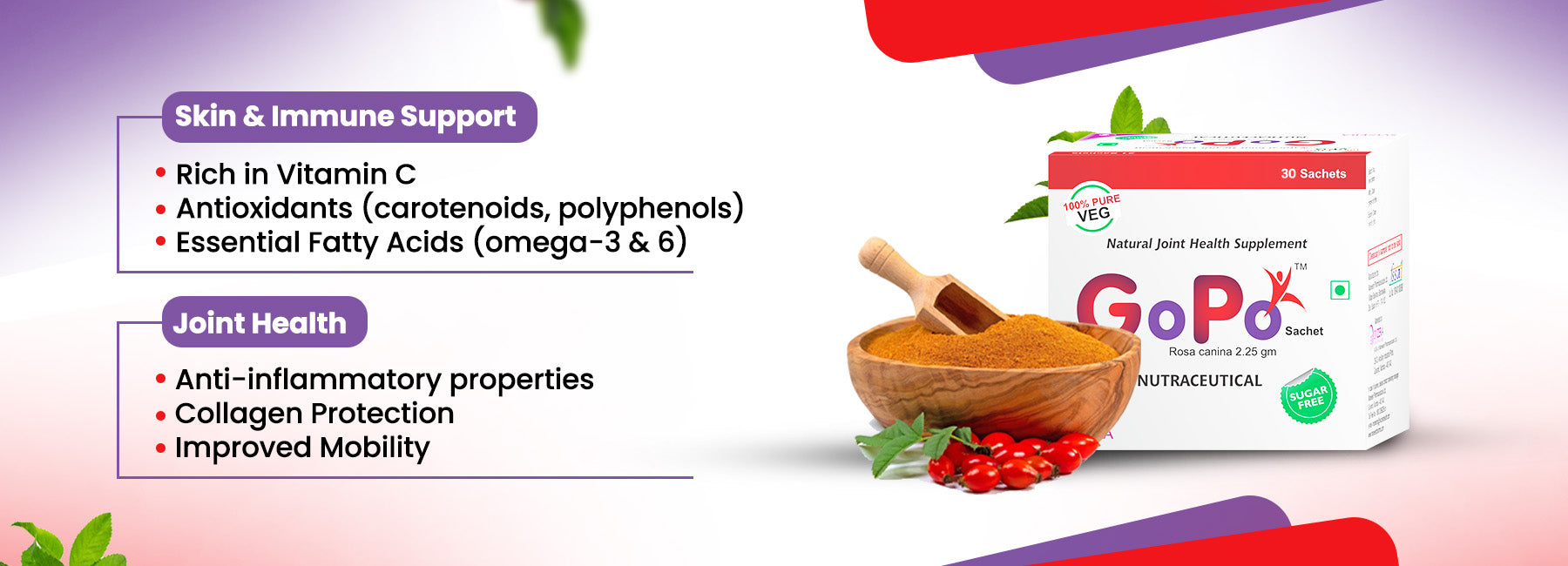 GoPo™ is a natural dietary rosehip supplement made from the whole fruit of Rosa canina L., carefully processed to preserve the highest levels of active compounds. Our unique drying and powdering technique retains the vital nutrients and naturally occurring bioflavonoids that help protect your body from oxidative stress and inflammation.